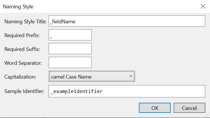 من عاشق نامگذاری زمینه های خصوصی خودم با پیشوند زیرخط هستم – کنوانسیونی که توسط بسیاری از جمله مایکروسافت تصویب شده و در پروژه هایی مانند NET Core استفاده می شود.