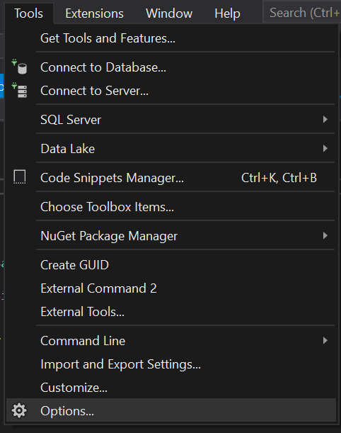 در داخل ویژوال استودیو بر روی Tools کلیک کنید و سپس گزینه ها