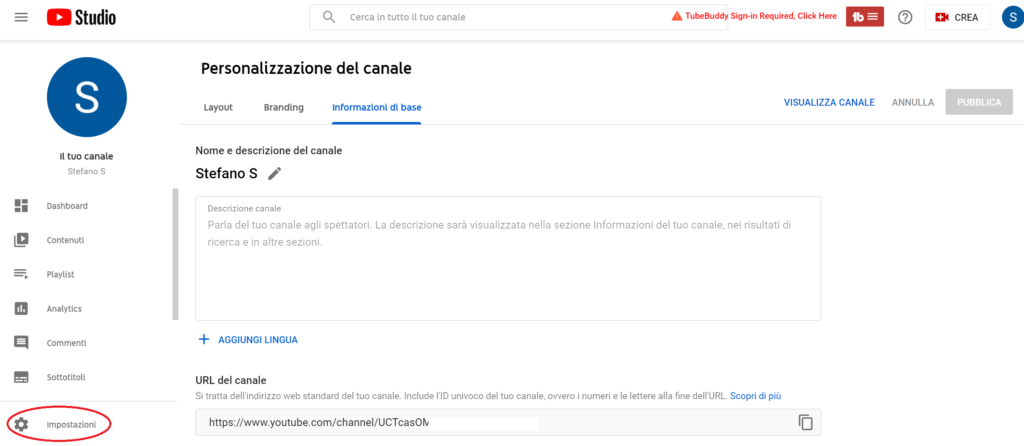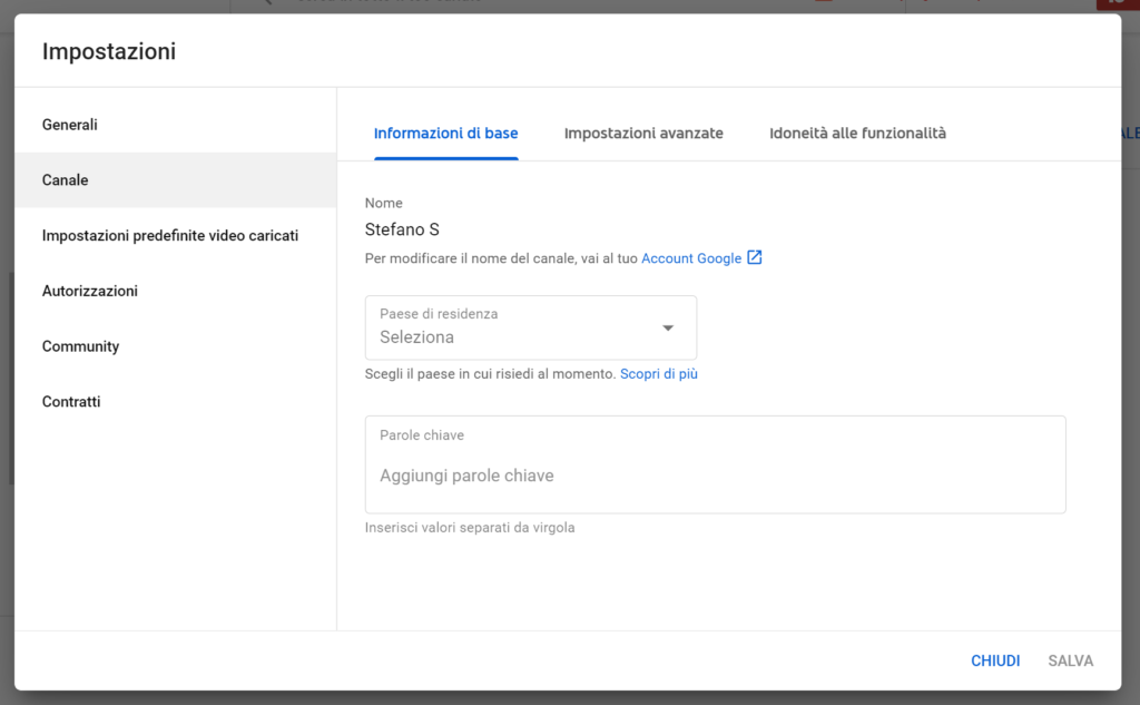 بخش مهم دیگر زیر فهرست تنظیمات است. در اینجا شما می توانید کشور محل اقامت خود را تنظیم کرده و کلمات کلیدی را وارد کنید که باعث می شود YouTube بفهمد کانال شما چیست.