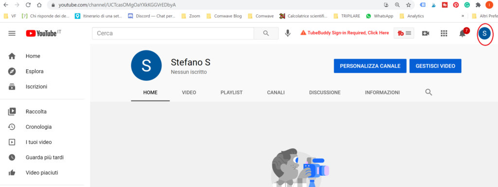 با کلیک بر روی نماد در بالا سمت راست ، منو باز می شود. روی "کانال خود" کلیک کنید.
